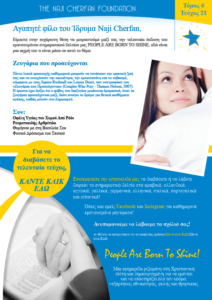 Το Ίδρυμα Naji Cherfan είναι στην ευχάριστη θέση να μοιραστεί μαζί σας το ηλεκτρονικό του ενημερωτικό δελτίο People Are Born To Shine με στόχο να εμπνεύσει τους αναγνώστες να ζήσουν μια πιο υγιή και άφθονη ζωή! Είμαστε στην ευχάριστη θέση να μοιραστούμε μαζί σας τη νέα έκδοση του εμπνευσμένου ενημερωτικού δελτίου μας: “Οι άνθρωποι γεννιούνται για να λάμπουν”.